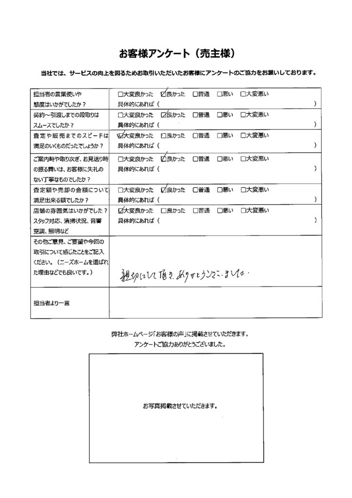 この度はニーズホームへ売却ご依頼、誠にありがとうございました。